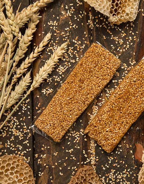 Pasteli is an exceptional source of energy and has great nutritional value, making it an ideal snack. Sesame seeds contain five times the amount of calcium found in full-fat sheep’s milk, and twice the iron found in spinach. They also have antioxidant properties and contribute significantly to lowering blood pressure.