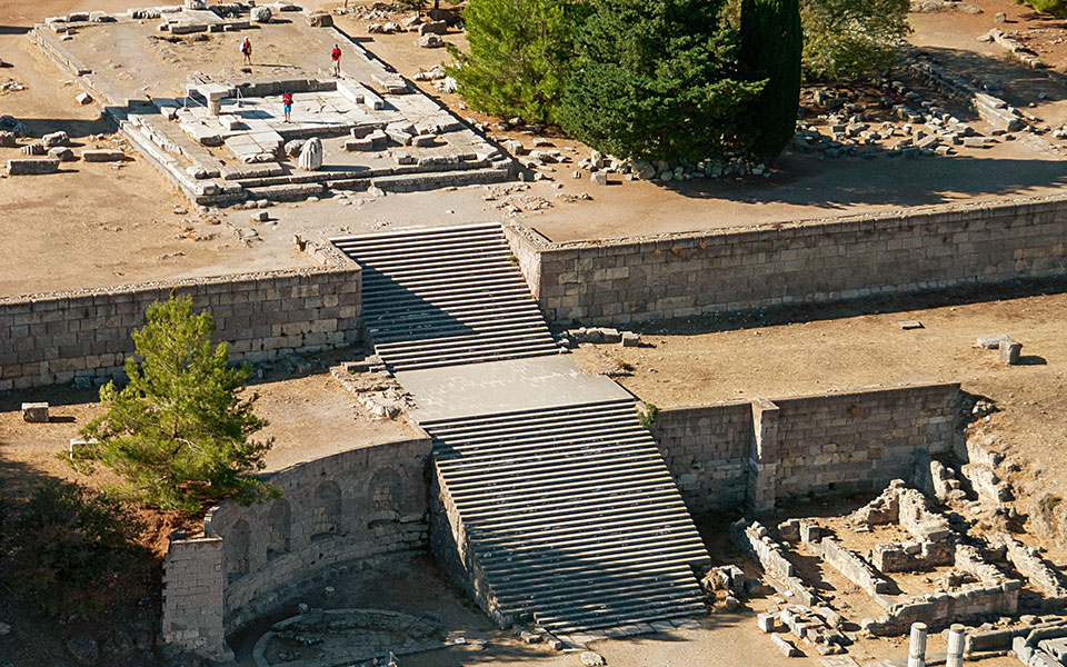 The Asclepeion occupies a hillside with three enormous terraces, massive retaining walls and interconnecting monumental staircases