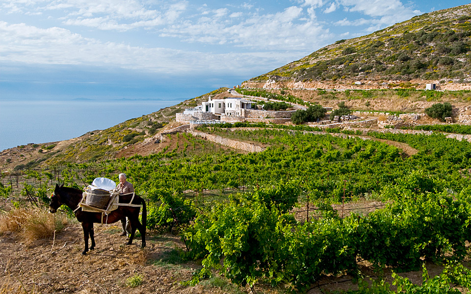 One of the loveliest walks in Sikinos is along a road that leads to the Manalis Winery, which is open to visitors. It produces four wine labels: En Lefko (made from the Asyrtiko, Aidani and Monemvasia varieties), the Rosé (from Aidani, Monemvasia and Mavrotragano), En Thermo (from Mavrotragano, Limniona and Fokiano) and Liosato, a sweet wine made from sun-dried grapes. It is worth sampling them while enjoying the view of the open sea and the fields of Sikinos.