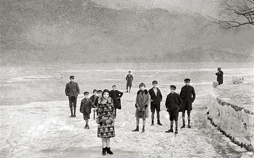 In the photograph above we see the frozen lake of Pamvotida. It is February of 1929 and Moissis notes in the caption that the particular photograph was easy to date, as the lake rarely freezes over. The strange landscape makes it look like time itself has frozen. But, unfortunately, that did not happen. 18-year-old Nelly, one of Nissim Levis’ nieces who we see standing front and center, was destined to die some years later in Auschwitz.
