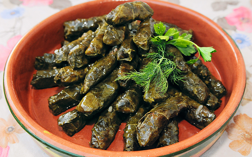 Yiaprakia, the local dolmades made of vine leaves stuffed with rice and herbs, are the most popular meze.