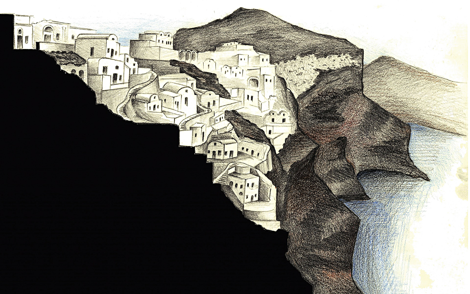 Santorini’s volcano is, perhaps, the factor that has most strongly determined how the islanders have lived through the centuries. A 7.5-Richter earthquake on 9 July 1956, caused widespread damage and left deep scars not just on the island’s residential character, but also on its economy, leading to a wave of emigration that decimated its working-age population. The people, however, persevered and rebuilt their homes and public buildings, as though bracing for the tourism boom that was to follow, and which brought new life, even to the ruins.