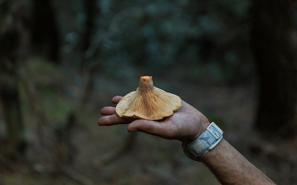 Nature here is bountiful, despite the evidence of human intervention. The air is alive with the scent of herbs and damp earth. Our legs brush against rockrose, juniper shrubs, and fern-like wild asparagus. On one hike, our guide Archelaos holds up a juicy variety of mushroom. Yellow with a white core, it is a Lactarios deliciosus, he tells us, and just as scrumptious as the name suggests. We pick three handfuls.
