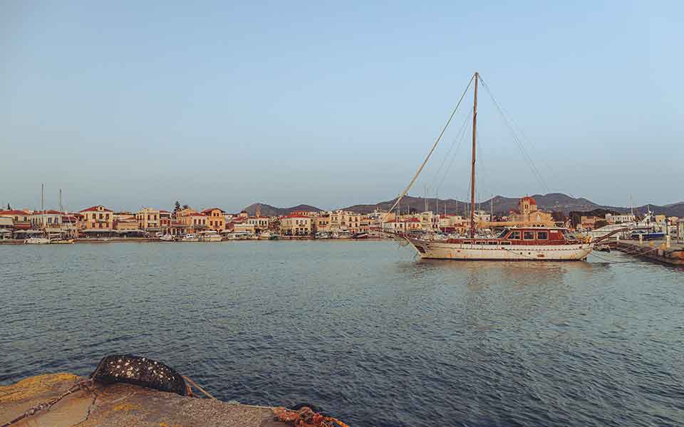 The port of Aegina, before the influx of summer visitors.