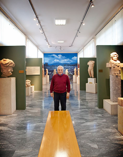 Veteran archaeologists Petros Themelis at the Archaeological Museum of Ancient Messene.