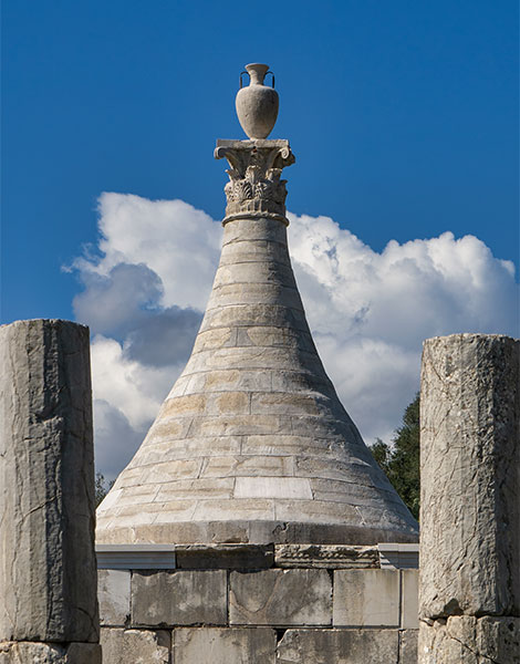 The restored funerary monument "K3" with its original conical-shaped cover, was built in the first quarter of the 3rd century BC.