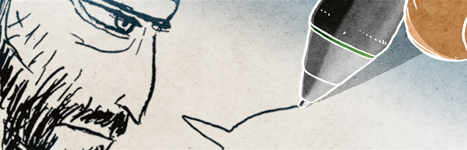 The creative process: an original illustration by Alecos Papadatos and Annie di Donna.