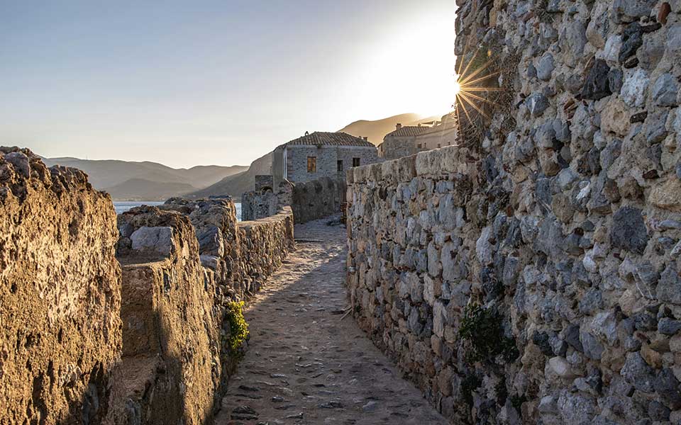 For a sweeping view of Monemvasia and the sea, hike up to the Upper Town and the Church of Aghia Sofia, a 12th-century gem perched high above the settlement. Along the way, you’ll pass restored stone buildings with arches – remnants of the old quarter. A project is already underway to create a network of walking trails throughout the archaeological site, including a cable car that will soon connect the Upper and Lower Towns. Also on the horizon is the dramatic lighting of the Monemvasia Rock and the opening of the Yannis Ritsos House Museum, set for early summer.