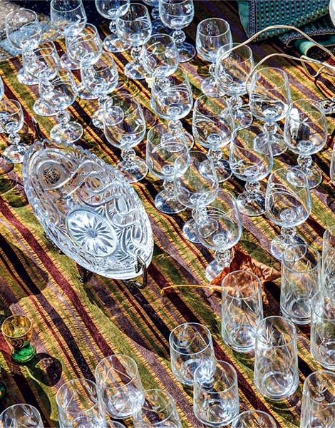 Glassware for sale on Astingos Street.