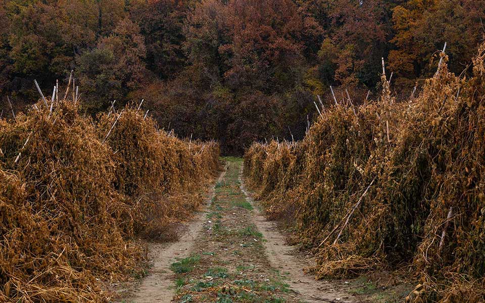 Bean plants in the plateaus of Kastoria, supported with canes. By early winter, most of the crop has already been harvested.