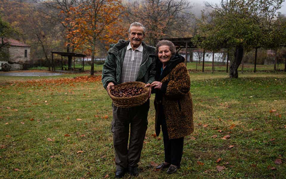As we ascend the winding roads through the forests of Mount Voio, the road signs bear names like Kastanofyto (Chestnut Grove) and Polykastano (Many Chestnuts), leaving no room for doubt – we are entering the heart of Kastoria’s famed Chestnut Villages. The landscape unfolds before us in a mesmerizing display of autumn hues, with the mountain’s deciduous trees cloaked in gold, crimson, and amber.