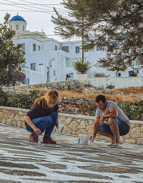 The local cultural group Kimolistes, which organizes beach cleanups and the whitewashing of stone paths, has set up lending libraries in boats and manages Cine Kalisperitis, the nomadic outdoor cinema that earned first prize at the ECTN Awards 2021 in the “Sustainable Cultural Tourism” category. There’s nothing like sitting on a beach in the midst of ruined castle and watching a movie under the stars.
