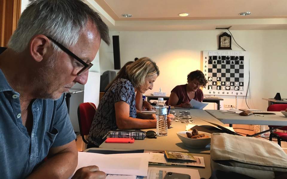 The students – ranging in age from 35 to 80 – who responded to the invitation of the school’s founder and teacher, Maria Skiada, all feel a strong attachment to the country that compelled them to take on the challenge of learning Greek, even though it has nothing in common with Switzerland’s three official languages. They have friends and even relatives in Greece, they have bought or inherited property here and travel here every year.