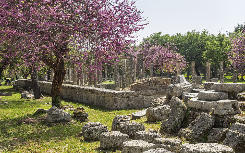 The archaeological site of Olympia includes the sanctuary of Zeus and other buildings erected around it. Pictured is the palaestra, a 66m2 building that dates to the late 3rd or early 2nd century BC. It is thought to have been used to train wrestlers and other athletes.