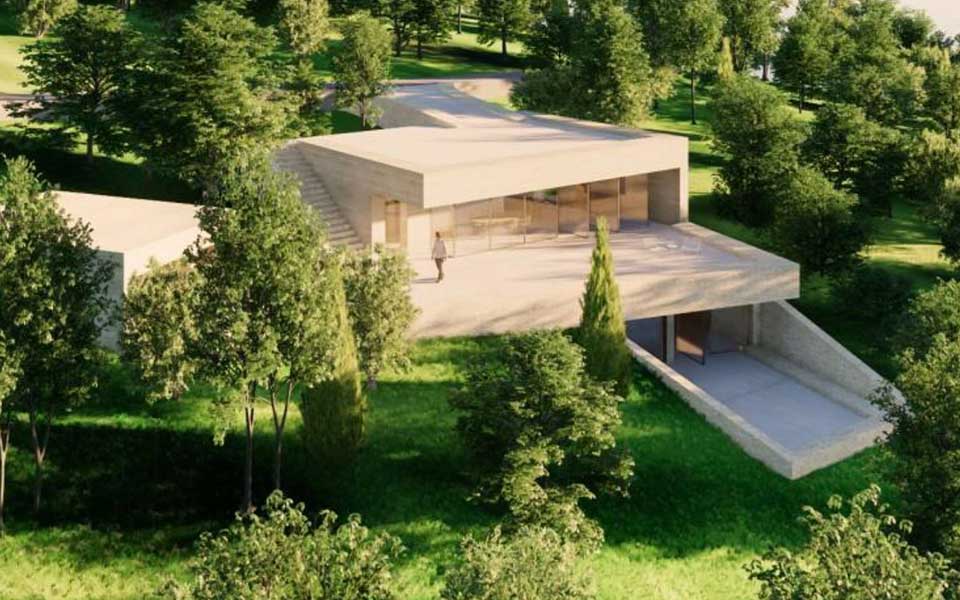 redevelopment of the private Skorpios Island in the Ionian recently approved by the Central Archaeological Council. The rendering was released to the public by the Greek Ministry of the Environment.