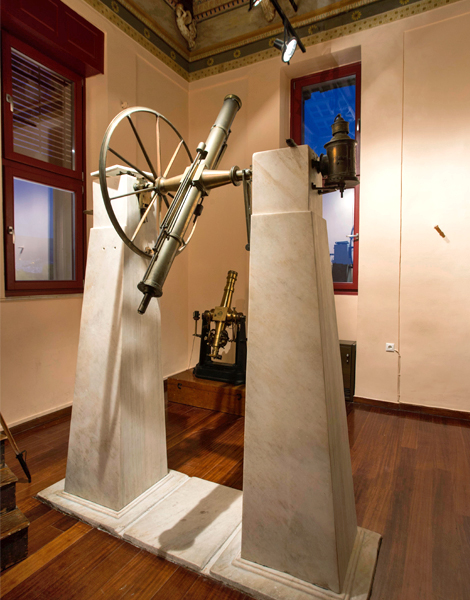 The entrance is etched with the phrase Servare Intaminatum (To be kept intact) and displays the escutcheon of the Sinas family. Tsimbidas explains: “Around 1849, Baron Georgios Sinas, then Greek consul in Vienna, expressed his interest in making a donation toward the development of scientific research. He sought the advice of his friend Anton von Prokesch-Osten, Austria’s ambassador in Greece, whose secretary at the time was the physicist and astronomer, professor Georgios Vouris. On their urging, Sinas decided to donate 500,000 drachmas to the Greek state to establish and equip an observatory in Athens. It was the first research center in the country and the foundation stone was laid on June 26 (July 8 by the new calendar), 1842 during a solar eclipse. It was inaugurated 169 years ago, on September 21 in 1846.”