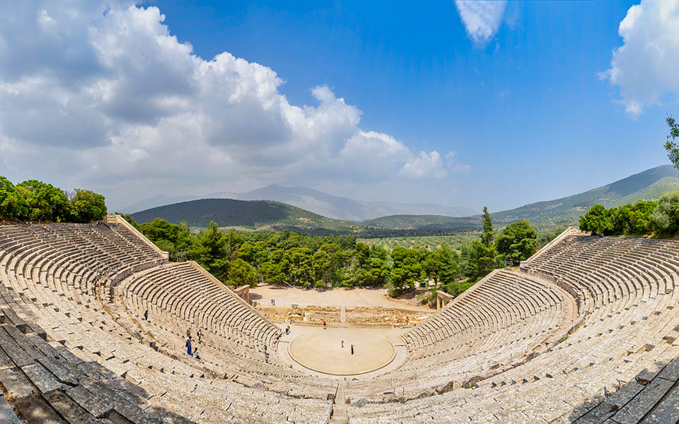 Built around 340-330 BC, it hosted music, singing and theater performances dedicated to the god Asclepius. Two and a half thousand years passed in silence before the excavations which brought it back to life began in 1881. The open air theater is famous for its scale (12,000 seats), elegance and design, as well as for perfect sight lines to the stage and for its acoustics. Stand in the center of the orchestra, ask a friend to climb up to the top row of the seating and then exhale loudly or tear a sheet of paper: you will hear them perfectly. The theater is only one part of the Asclepeion archaeological site, which boasts the remains of the oldest-known medical center. Exploring the ruined buildings is exhilarating. If you’re in the mood for a hike, you’ll find a trail map at the entrance to the theater.