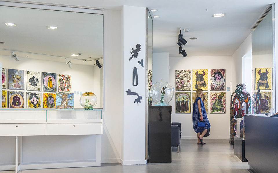 This beautiful, colorful space near the Acropolis not only hosts art exhibitions but also boasts an excellent collection of Greek jewelry, both fine and costume, as well as cool Greek accessory brands like Salty Bag, which makes totes and purses from decommissioned sails. Roman ruins are visible through glass floors.