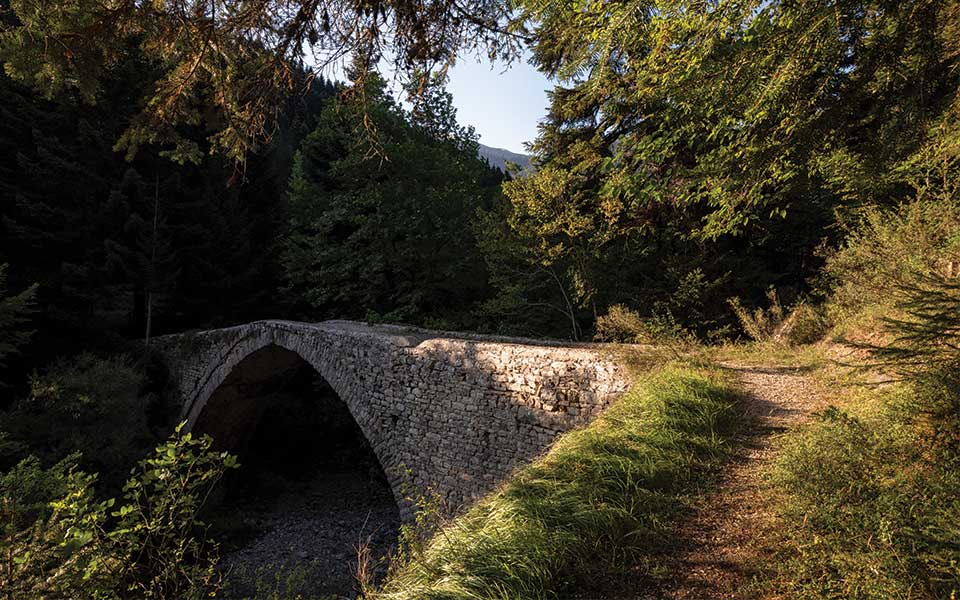 True to its name, Pyli – which means “Gate” in Greek – serves as the gateway to the mountainous terrain of southern Pindus. The village is built at the mouth of the Portaios River gorge, between the Itanos and Koziakas opposing mountains. About a kilometer outside Pyli stands a remarkable stone bridge, a stunning piece of architecture believed to have been built in 1514. Its single arch spans 67 meters, serving as a lasting testament to the craftsmanship of a bygone era.