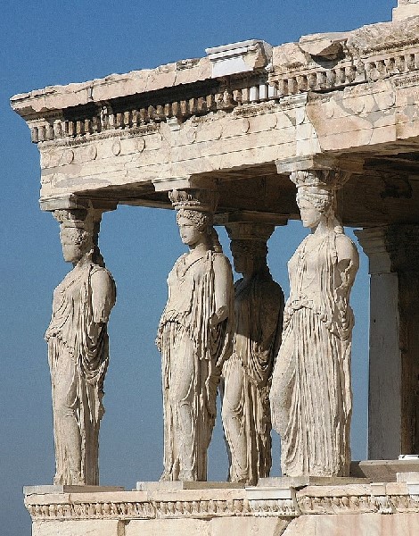 The Caryatid porch of the Erechtheion in Athens. The statues are now replicas. The originals are in the Acropolis Museum (with one in the British Museum).