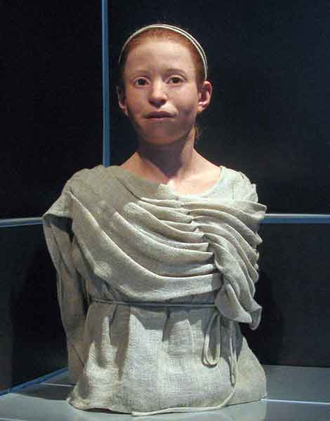 Recovered from a mass grave in the Kerameikos in the mid-1990s, “Myrtis” was the name given to an 11-year-old girl who died of typhoid fever during the Plague of Athens in 430 BC. Myrtis’ skull was exceptionally well preserved, enabling Greek orthodontics professor Manolis Papagrigorakis to scan her facial features and build an accurate reconstruction. Myrtis’ reconstructed appearance, used in the United Nations’ “We Can End Poverty” campaign in 2011, was given brown eyes and red hair.