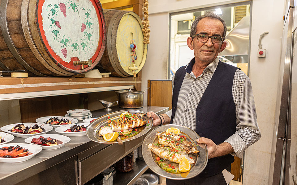 At Kostas Antonodimitrakis' ouzerie, enjoy traditional Cretan meze dishes and sea views.
