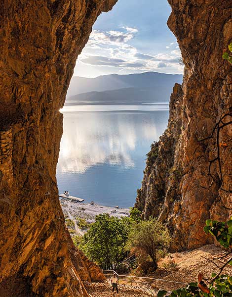 A short distance away in the village of Psarades, traditional lake boats (plaves) take visitors to hermitages where Orthodox Christian monks from across the vast Byzantine territories once sheltered. In some of these rocky caves where anchorites made their homes, rare religious frescoes have survived, offering visitors glimpses of a splendor born of faith.