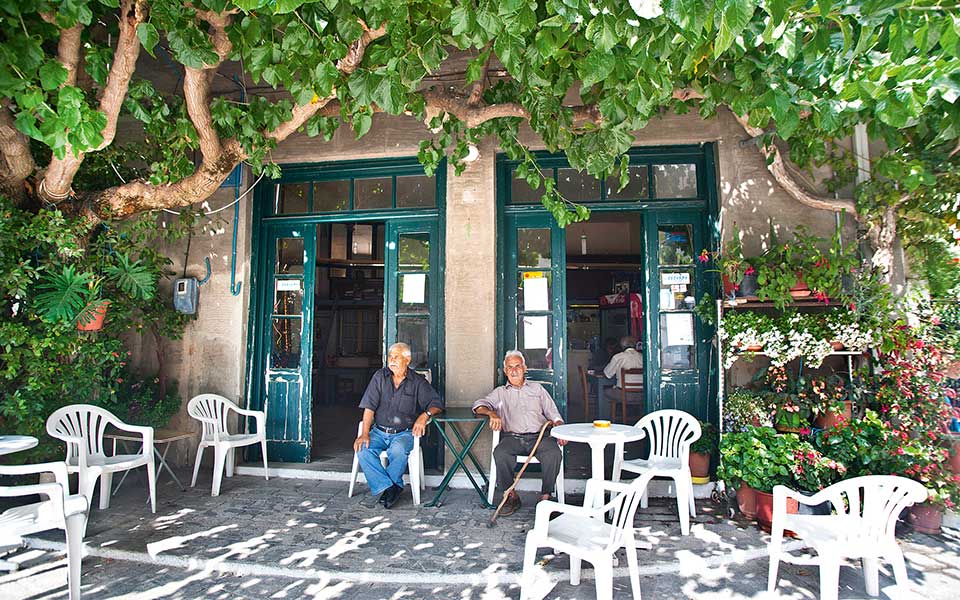 The kafeneio, or traditional coffeehouse, is the main social hub of the village; join the locals for a glass of raki.