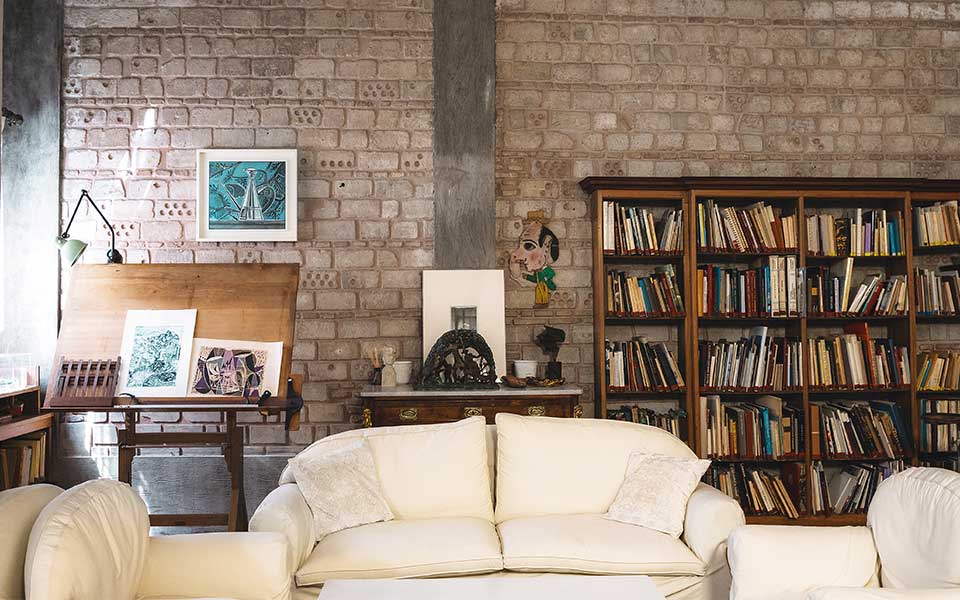 The family home of painter, engraver, and stage designer Nikos Hadjikyriakos-Ghika is a quintessential example of interwar apartment architecture. In 1955, the artist renovated the 4th floor of the building at 3 Kriezotou Street, and added an extra story for his studio. An advocate of modernism and a vital figure of the Generation of the ’30s, Ghika, whose works hang in the Tate Gallery, MoMA, and the Musée d’Art Moderne in Paris, found his unique style in Greece by combining the principles of cubism with the distinctive light and architecture of his homeland.