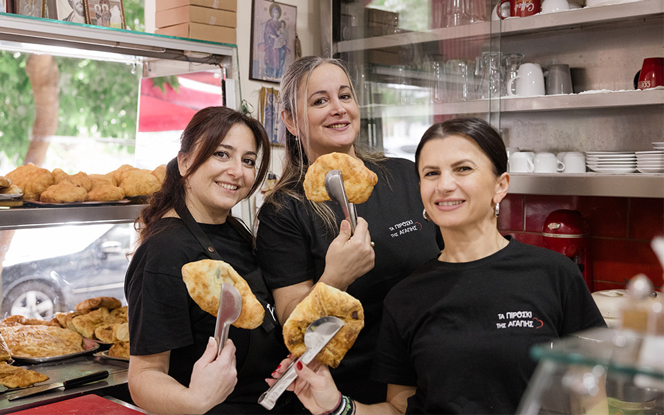 Since opening in 2006, Agapi has been delighting locals with homemade pirozhki prepared fresh every day, using dough mixed and shaped on the spot. In a small workspace tucked behind the cozy storefront on Chalkeon Street, the team kneads, fills and either bakes or fries each pastry to order, depending on the recipe. The best seller is the one filled with three cheeses, though the menu offers many other tempting combinations as well: spinach and cheese; chicken with mushrooms; red beans; minced meat; and potato with tomato and olive. Another house specialty is the khachapuri – the iconic Georgian cheese bread, made according to a cherished family recipe brought from Tbilisi when the owners moved to Greece in 1994.