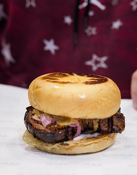 Half-brothers Dimitris Kassis and Apostolos Petridis opened Maverick in the summer of 2024. Lifelong food enthusiasts, they envisioned a street kitchen serving sandwiches made entirely from ingredients they cook themselves. The dish that perfectly sums up their philosophy is the brisket sandwich: beef brisket slow-smoked in their custom-built smoker right beside the truck, tucked into multigrain sourdough bread, and layered with braised sauerkraut, roasted-garlic mayo and mustard vinaigrette. “We wanted to be in direct contact with people, not hidden behind four walls,” says Dimitris, as he shapes the patties for their much-loved smash burgers.