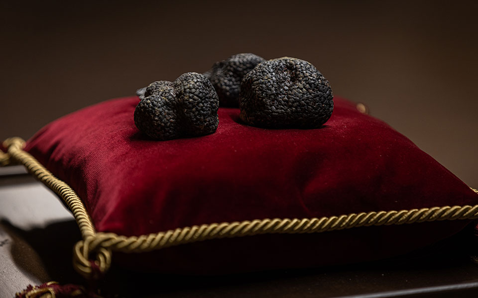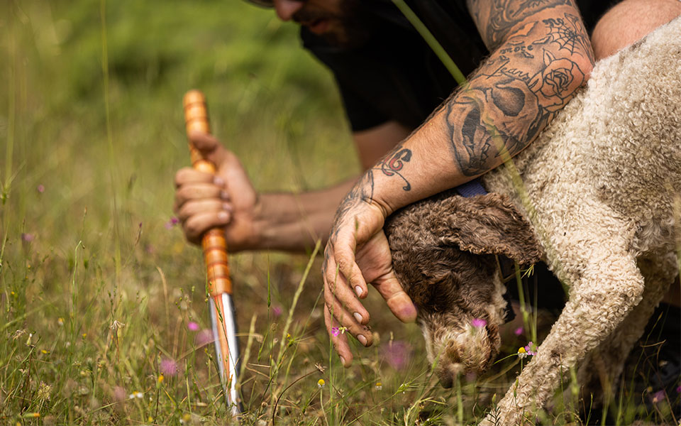 Training begins when the pups are just a couple of months old; they start by playing “fetch” with truffles, carrying them gently in their mouths so as not to crush them. Benfra belongs to an Italian breed prized for its excellence in truffle hunting. She doesn’t miss a single ripe truffle, and she’s very precise in her work, not over-digging. That precision is very important; truffles regenerate very quickly so, as long as the root with its spores remains undisturbed, there will be a new truffle in the same spot in five days’ time. Alexandros delicately replaces the soil around the root in order to protect it for their next hunt.