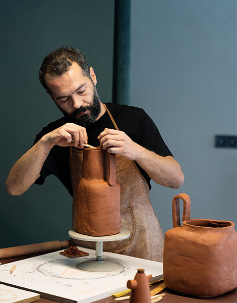 One of these creative newcomers is Simos Antoniadis, an architect who discovered a passion for ceramic art that he᾽s expressing in his new venture ULURU. “For now, it᾽s a ceramic arts workshop, but in the future, I᾽d like it to host other forms of creativity.” Due to open soon, ULURU is housed in an abandoned corner shop that Simos came across while strolling around the area. He rented it immediately and, with the help of his friends, spent a summer transforming the space, which features a bright green ceiling, many plants, and his ceramic creations, as well as the old sign that had hung there previously.