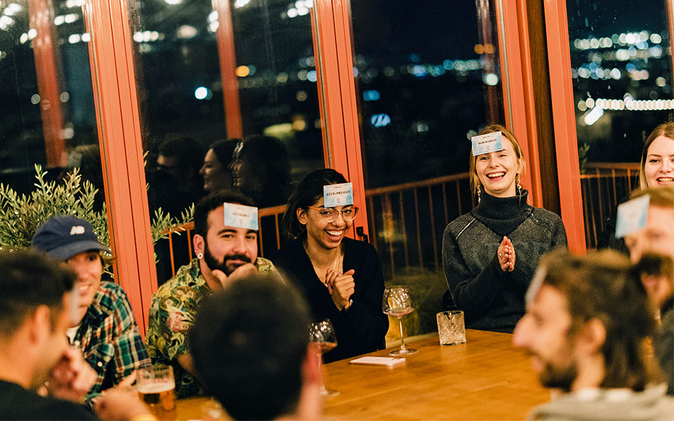 At a side table sits a man in his early forties, alone but smiling as he watches the boisterous group still playing “Guess Who I Am.” I wonder if he feels lonely. But as the game unfolds, he starts slipping them clues about the mystery character. By the next round, he’s part of the team.