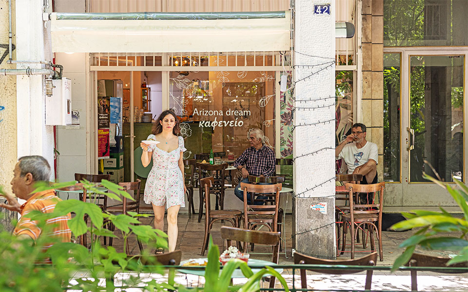 Pedestrianized Aghia Zoni Street in Kypseli is home to many shaded dining options, including the meze restaurant Arizona Dream.