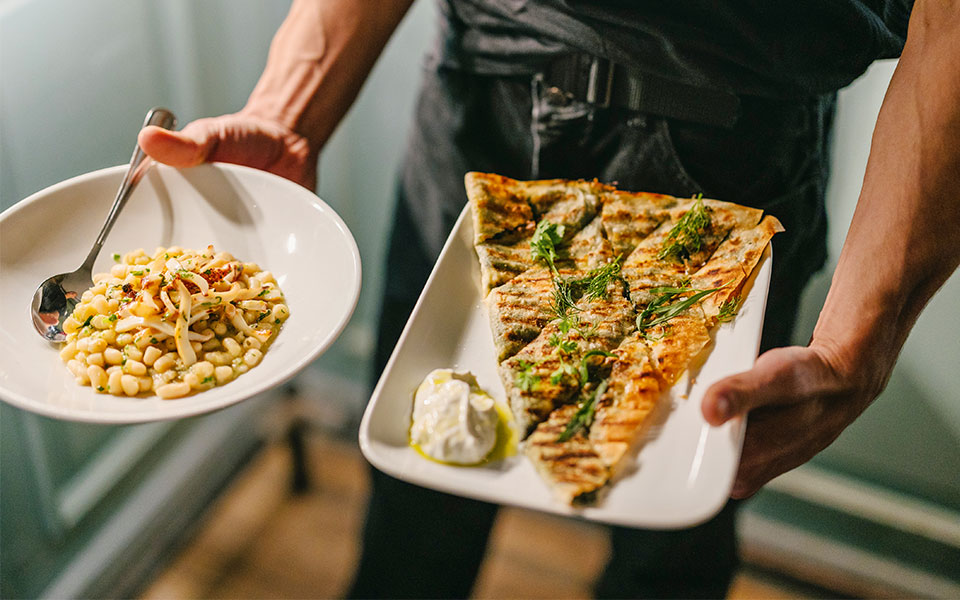 In the uphill lanes of Ano Kypseli, we find Ypsala (1 Ostrovou, Tel. (+30) 210.881.3175), an oasis of calm on a wide, leafy street – a welcome contrast to the neighborhood’s typically tight, busy blocks. Founded by three friends, Ypsala makes the most of a tiny 3-square-meter kitchen by focusing on quality ingredients, most sourced directly from Crete.