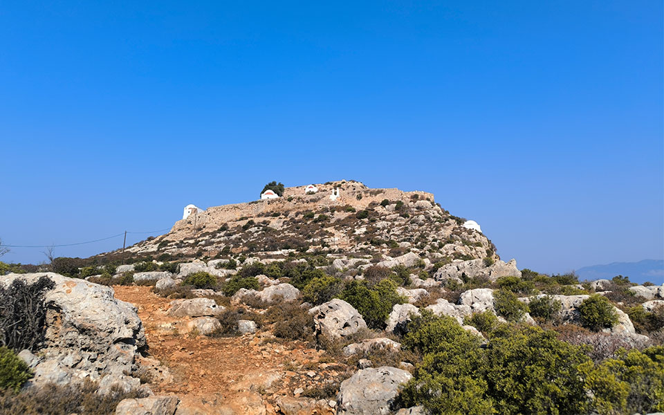 Hiking to Paleokastro, at the top of which stand three 19th-century churches.