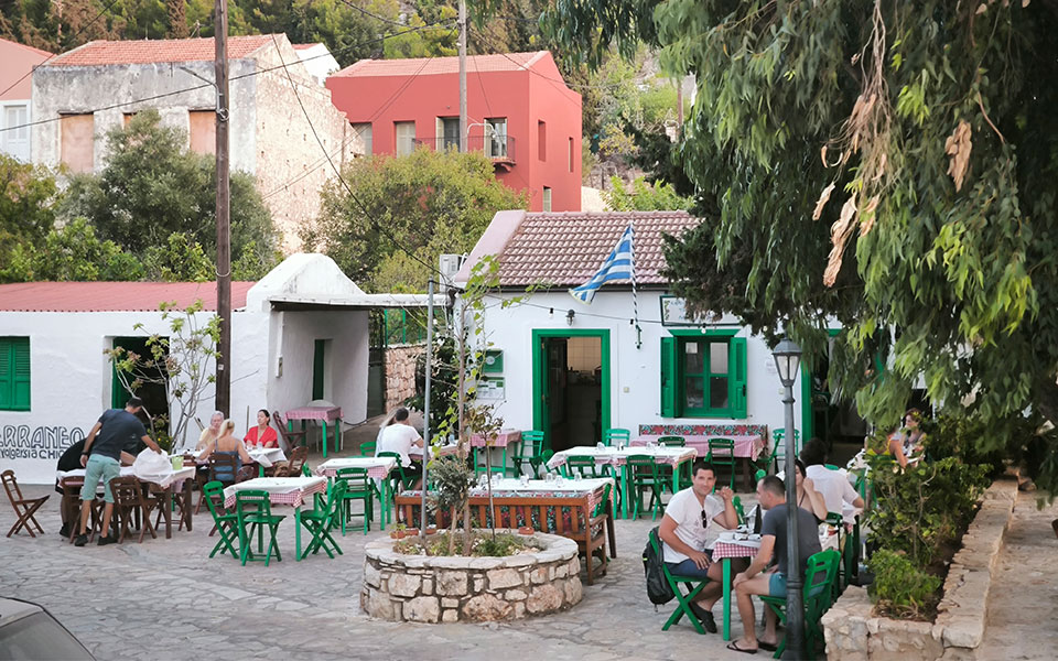 Dining options on the island are limited, but worthwhile. Don’t miss the home-style dishes at Ta Platania tavern, near the church of Aghios Constantinos, or the seafood at Alexandra, right on the harbor. Popular cafés include Stratos, Aquarium, and Meltemi, while new addition Mourayo serves focaccia and handmade sweets.