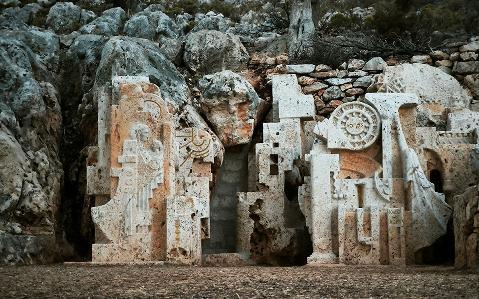 Sculptures by artist Alexandros Zygouris can be found in the small grove past the “Megisti” hotel.
