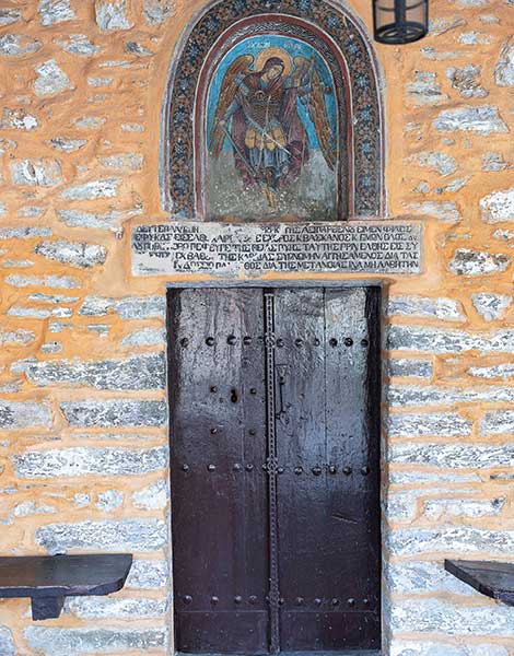 The entrance of the Church of the Archangels (Pammegiston Taxiarchon) in Milies.