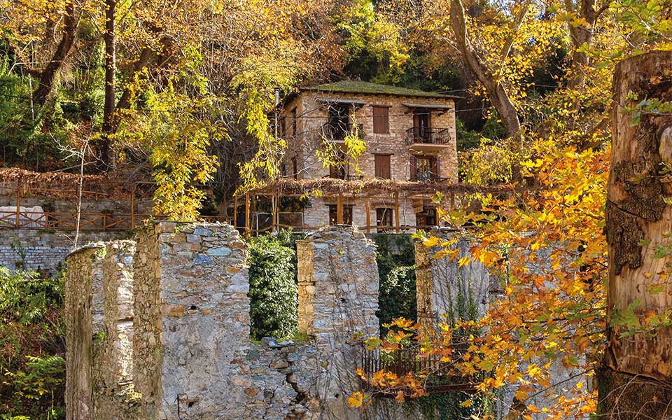 Don’t miss a ride on the historic Pilio train from Ano Lechonia to Milies, offering spectacular views – from sea and olive groves in the lower elevations to plane trees and dense forest as the train climbs higher. From the Milies train station, you can walk along the tracks to the historic De Chirico Bridge, named after the engineer – and father of the famous Italian painter – who oversaw the railway’s construction.