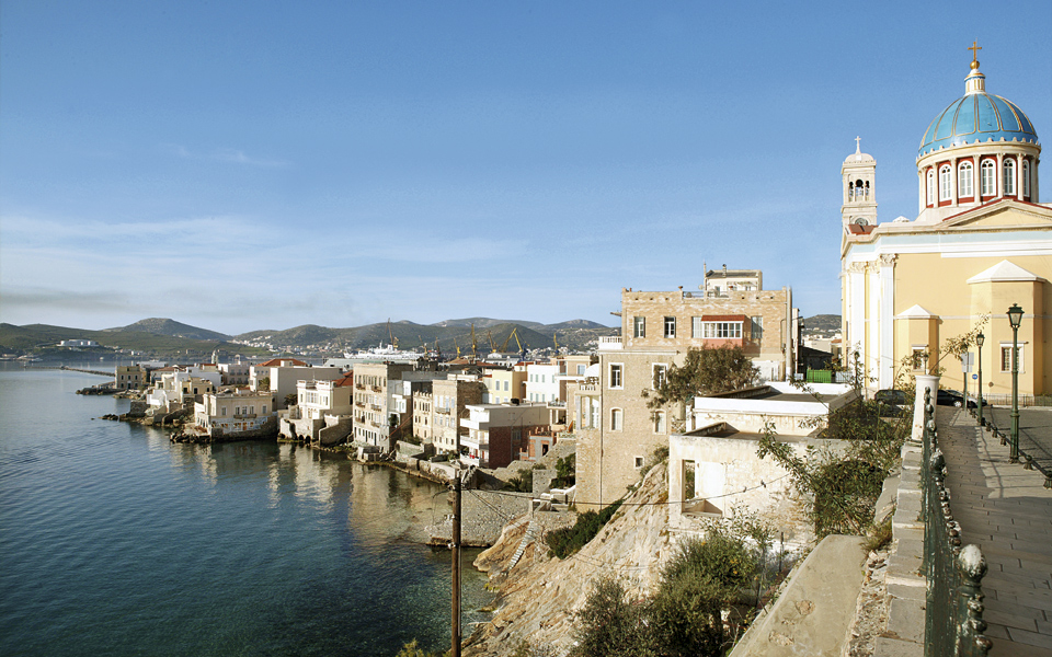 The Catholic cathedral of Saint George dominates the town of Ano Syros.