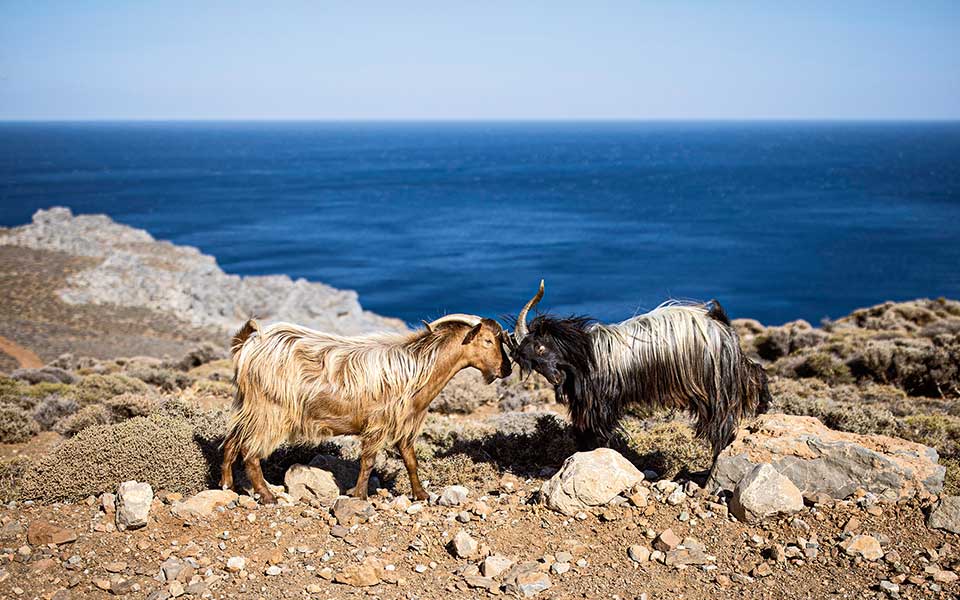 The Asterousian landscape is characterized by barren slopes that are half covered by thyme bushes and overlook the Libyan Sea.