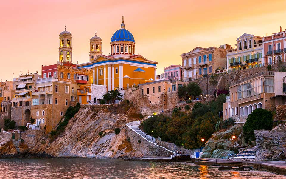 What characterized Syros if not its stately mansions? Take an afternoon stroll along Posidonia, the well-known Dellagrazia, to explore the neoclassical summer residences featuring large gardens with palm trees that were built in the late 19th century. In the evening wander around Vaporia, the former aristocratic neighborhood with captain’s houses literally hanging above the sea, much like galleys.