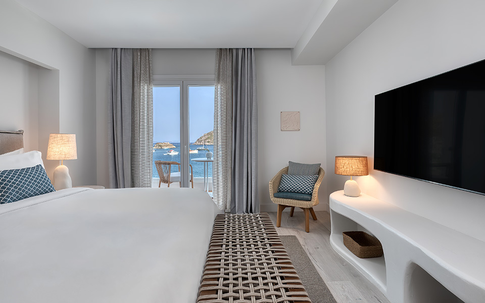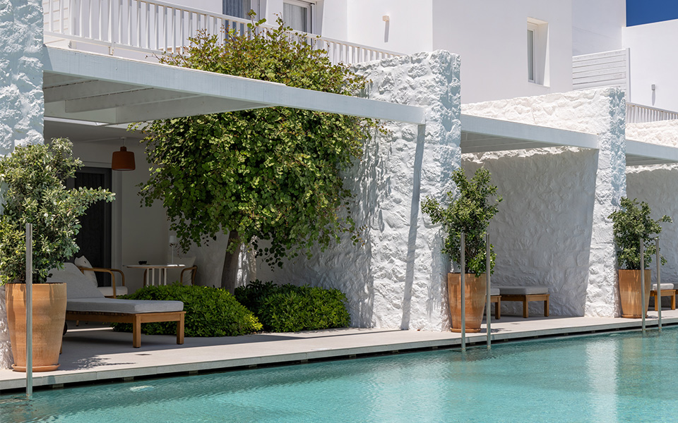 On the island’s serene south coast, Grikos Bay offers one of Patmos’ most picturesque settings, a natural haven of calm, with refreshingly cool waters, soft sand mixed with tiny pebbles, and protection from sea winds thanks to the small islet of Tragonisi just offshore. Located on this idyllic bay is Patmos Aktis, Resort & Spa, which blends seamlessly into the landscape around it.