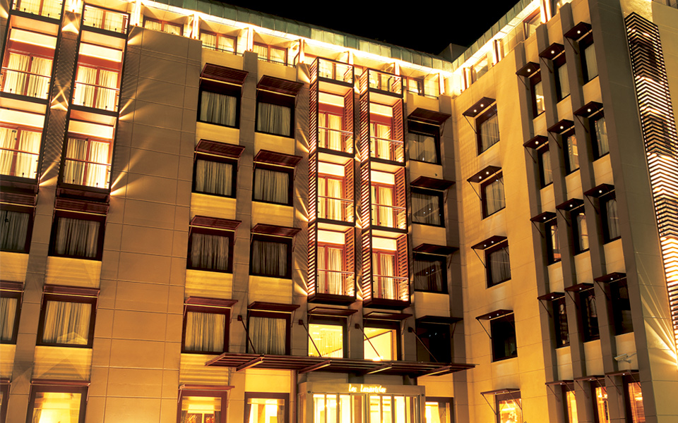 Domotel Les Lazaristes used to be a tobacco warehouse before it was converted into a modern luxury 5-star hotel. The surrounding area, with cultural institutions like the National Theater of Northern Greece, the School of Fine Arts, the State Museum of Contemporary Art and the Moni Lazariston Cultural Center, from which the hotel takes its name, is a hub for the arts. The hotel, in turn, celebrates the arts by dedicating each of its floors to a different art form and naming its most prominent spaces after different Greek and foreign artists.