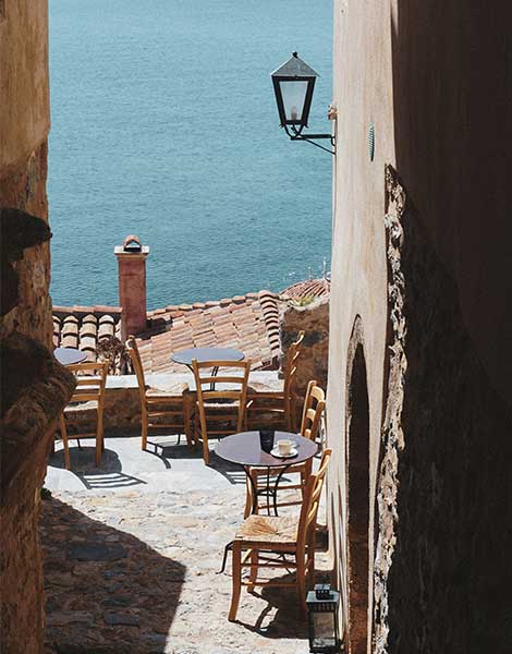 At Voltes (Castle of Monemvasia, Tel. (+30) 27320.619.19), you’ll enjoy well-prepared meze made from local products, with a modern twist.