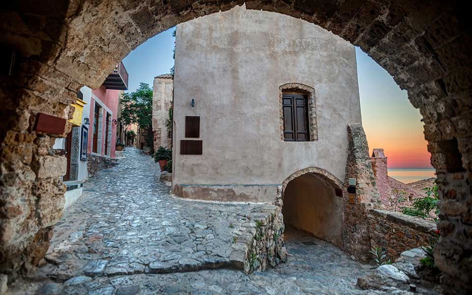 For a sweeping view of Monemvasia and the sea, hike up to the Upper Town and the Church of Aghia Sofia, a 12th-century gem perched high above the settlement. Along the way, you’ll pass restored stone buildings with arches – remnants of the old quarter. A project is already underway to create a network of walking trails throughout the archaeological site, including a cable car that will soon connect the Upper and Lower Towns. Also on the horizon is the dramatic lighting of the Monemvasia Rock and the opening of the Yannis Ritsos House Museum, set for early summer.