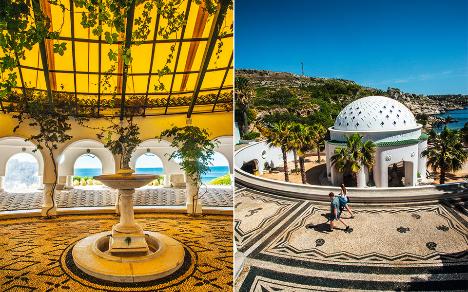 Designed by architect Pietro Lombardi and built by the Italians in 1929, the luxurious facilities of Kallithea Springs, located just 9k from Rhodes Town, have been attracting crowds of visitors ever since. Now restored to their former glory, they make for an idyllic inter-war period setting, with their two rotundas (the bigger one boasting a 14m dome), flower-covered pergolas, a patio and even a fountain with a figure of Eros.