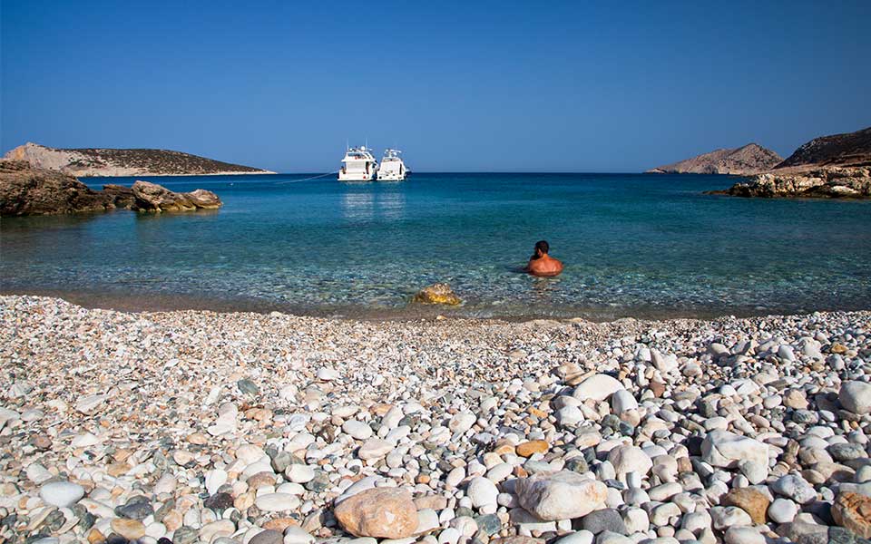 I suddenly lose all sense of patience and start practically rolling down the rocks until I get to the beach – either the sandy Mesa Ammos or the neighboring pebbly Sapounochoma. I dive my head into these magical waters, the coolness of which drains my mind of all worries. I follow the sun all day until it sets, seeking its heat at times or some shade at others.